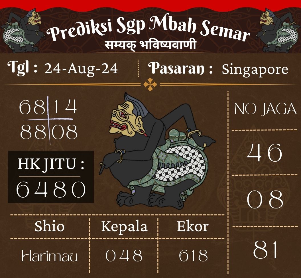 Prediksi SGP Mbah Semar Hari Ini 24 Agustus 2024 Jitu Akurat
