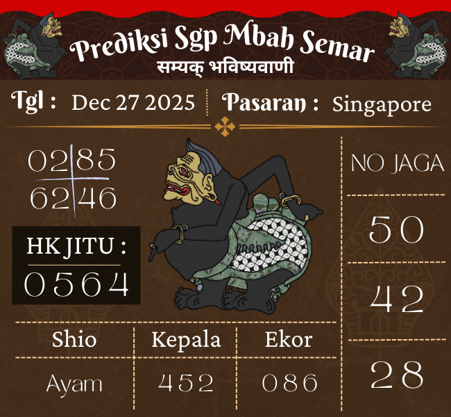 Prediksi SGP Mbah Semar Hari Ini 27 December 2025 Jitu Akurat